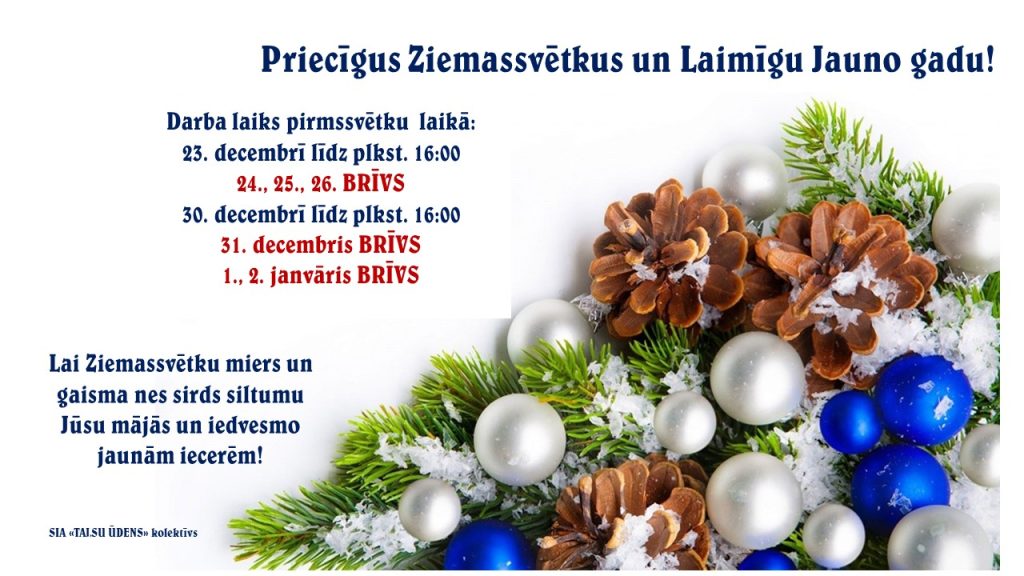 Informējam klientus, ka š.g. 17. janvārī SIA “TALSU ŪDENS” strādā: